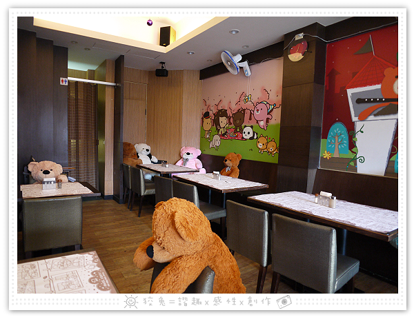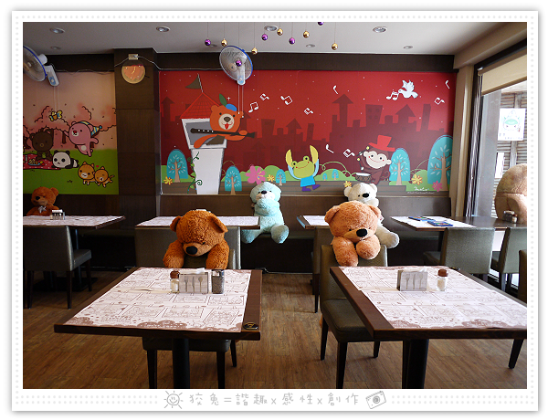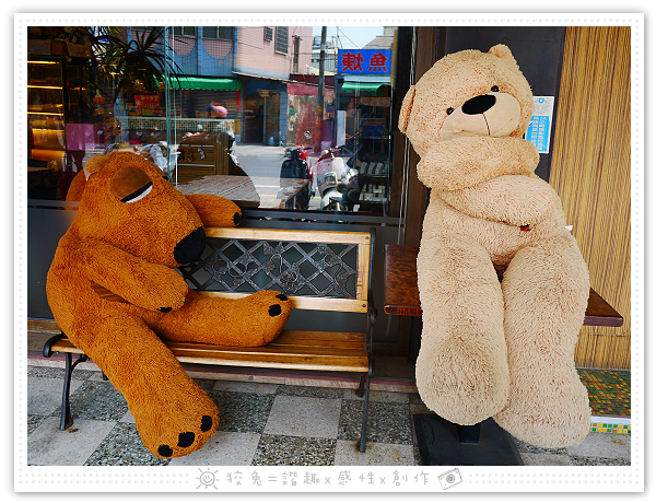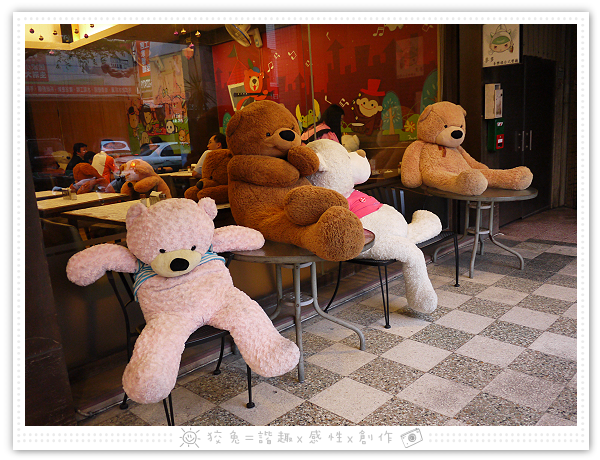 餐廳外頭擺了好幾隻熊娃娃,靜待大家來玩弄~~