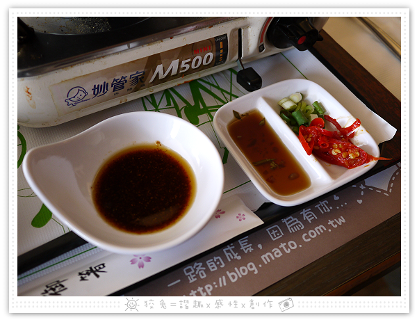 沾醬有兩小碟,沙茶醬以及油醋醬附加辣椒、蔥末~~