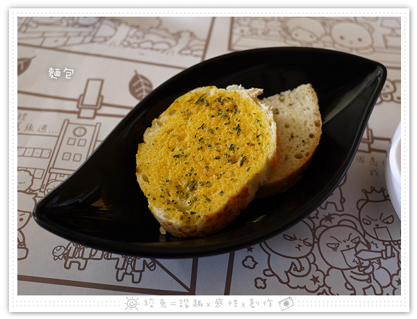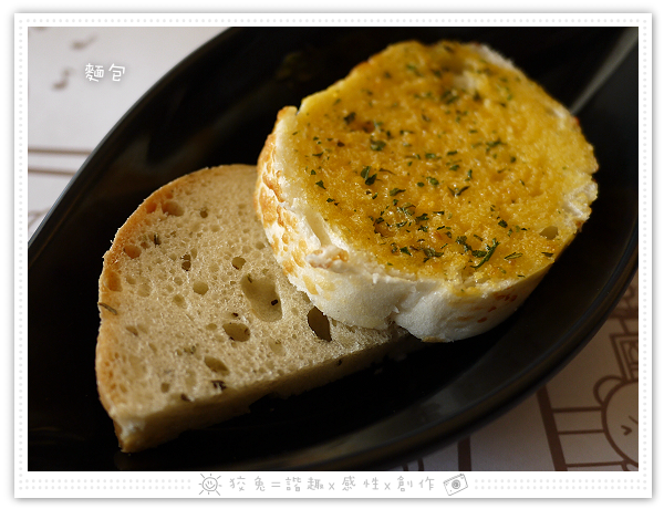 麵包給了兩片,上面那塊香蒜麵包模樣誘人!超好吃~~