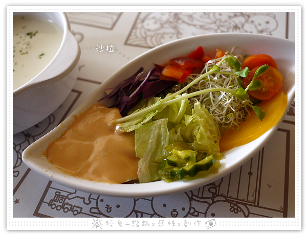 這一碟沙拉的配色多彩多姿,千島醬味道偏酸,有助開胃。