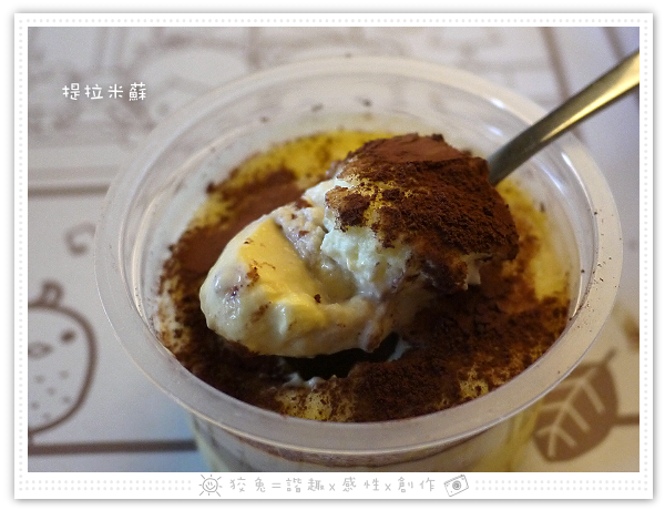 提拉米蘇有三層,可可粉覆蓋下方濃郁的鮮奶、乳酪慕斯層,