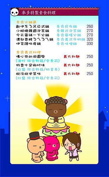 此外還有西式排餐和火鍋等亞洲料理,素食選項也不少~~